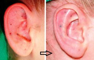 一般に、術後の再発は少ないのですが、過去の文献などのデータをみると、耳の軟骨がやわらかい小児で10%程度、大人の軟骨が硬い場合で最大20%程度の再発率が報告されています。当院でのデータは過去20年程度ですが、再発の患者さんは非常にまれです。