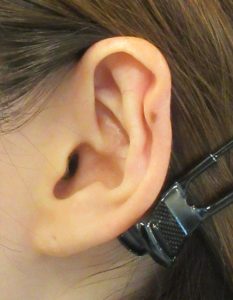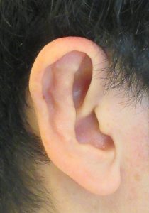 上記:耳の外輪が中央で凹んでいます。また、横からみてもいびつな形に見えます。